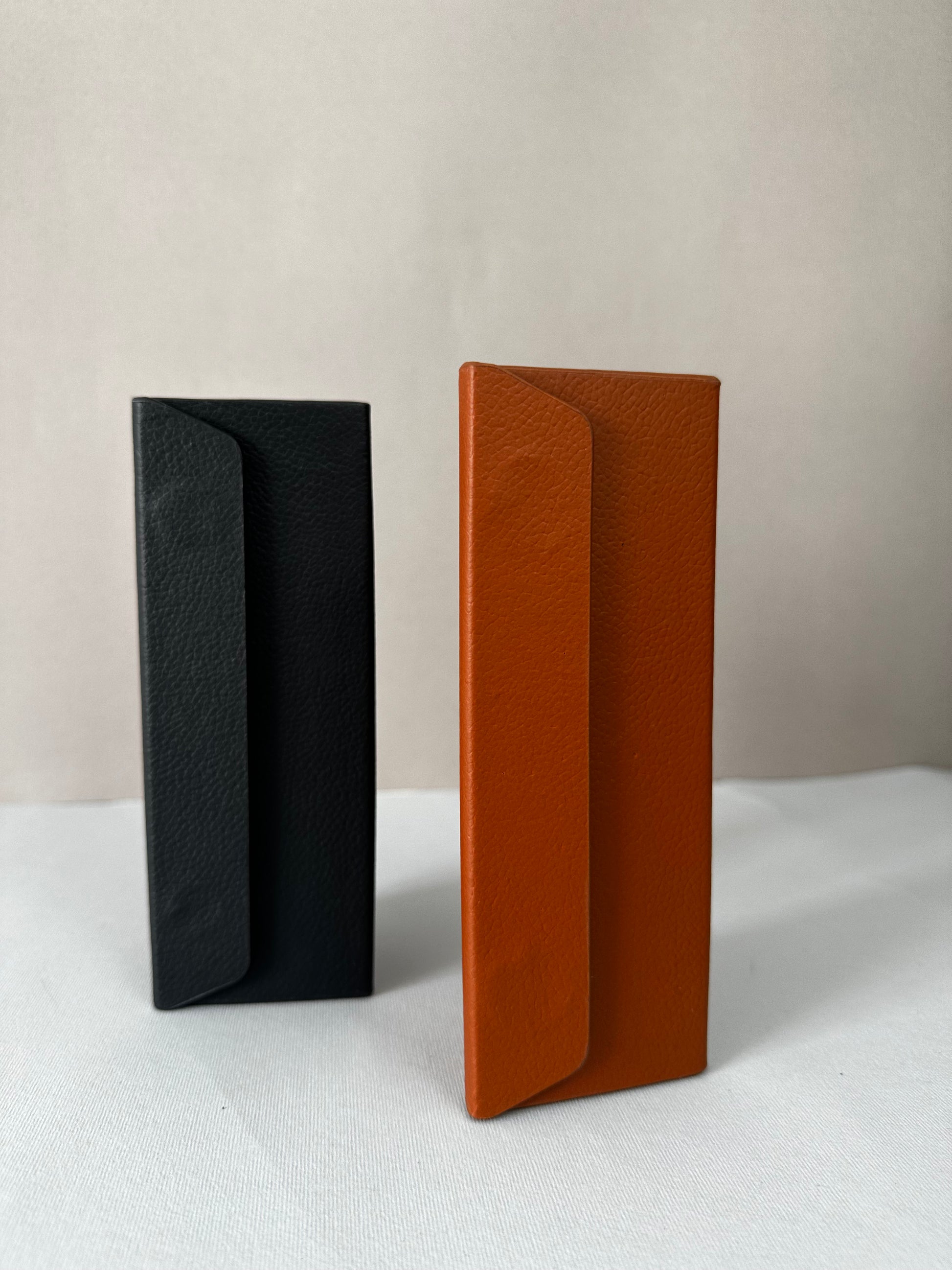 Protect your glasses in style with our premium plant-based leather eyeglasses case. Made with Banofi Leather, this case is perfect for keeping both sunglasses and glasses safe with a secure magnetic closure. Our elegant design prioritizes durability and sophistication.